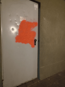 Zunächst hatte ich vermutet, dass hier auch Hakenkreuze waren, und diese aber übermalt wurden. Allerdings wird das wahrscheinlich nicht so gewesen sein.